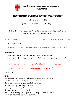 Sixteenth Sunday after Pentecost
